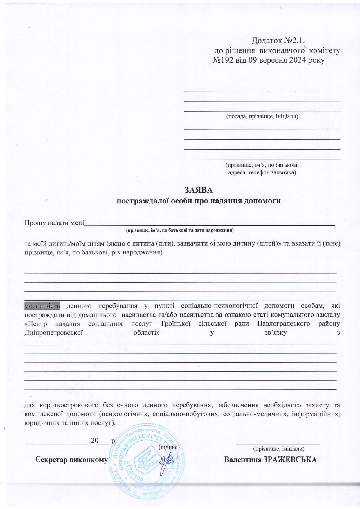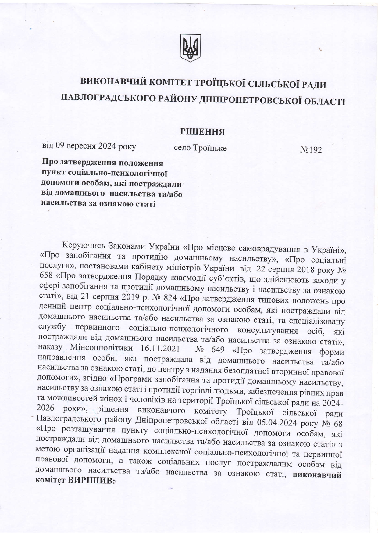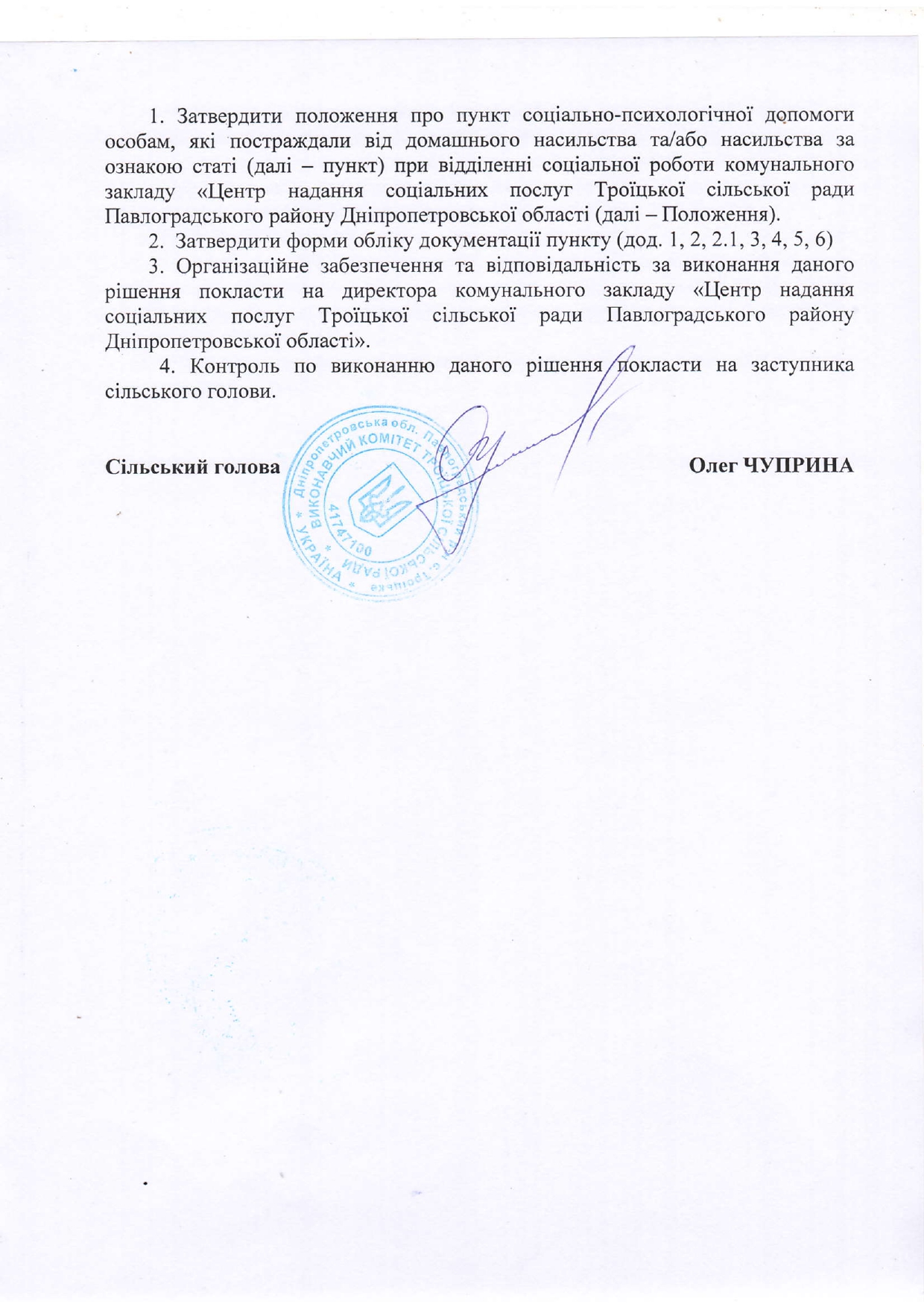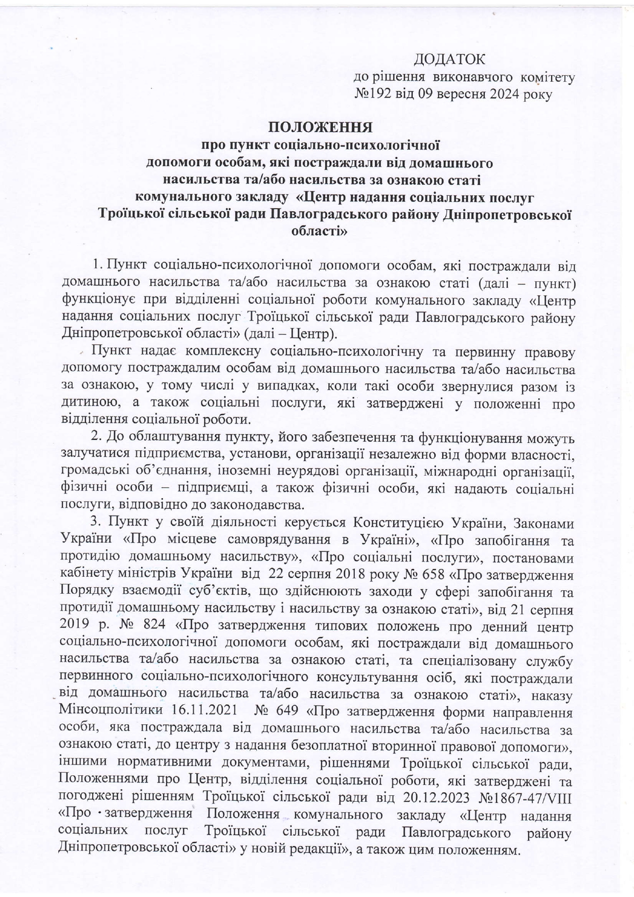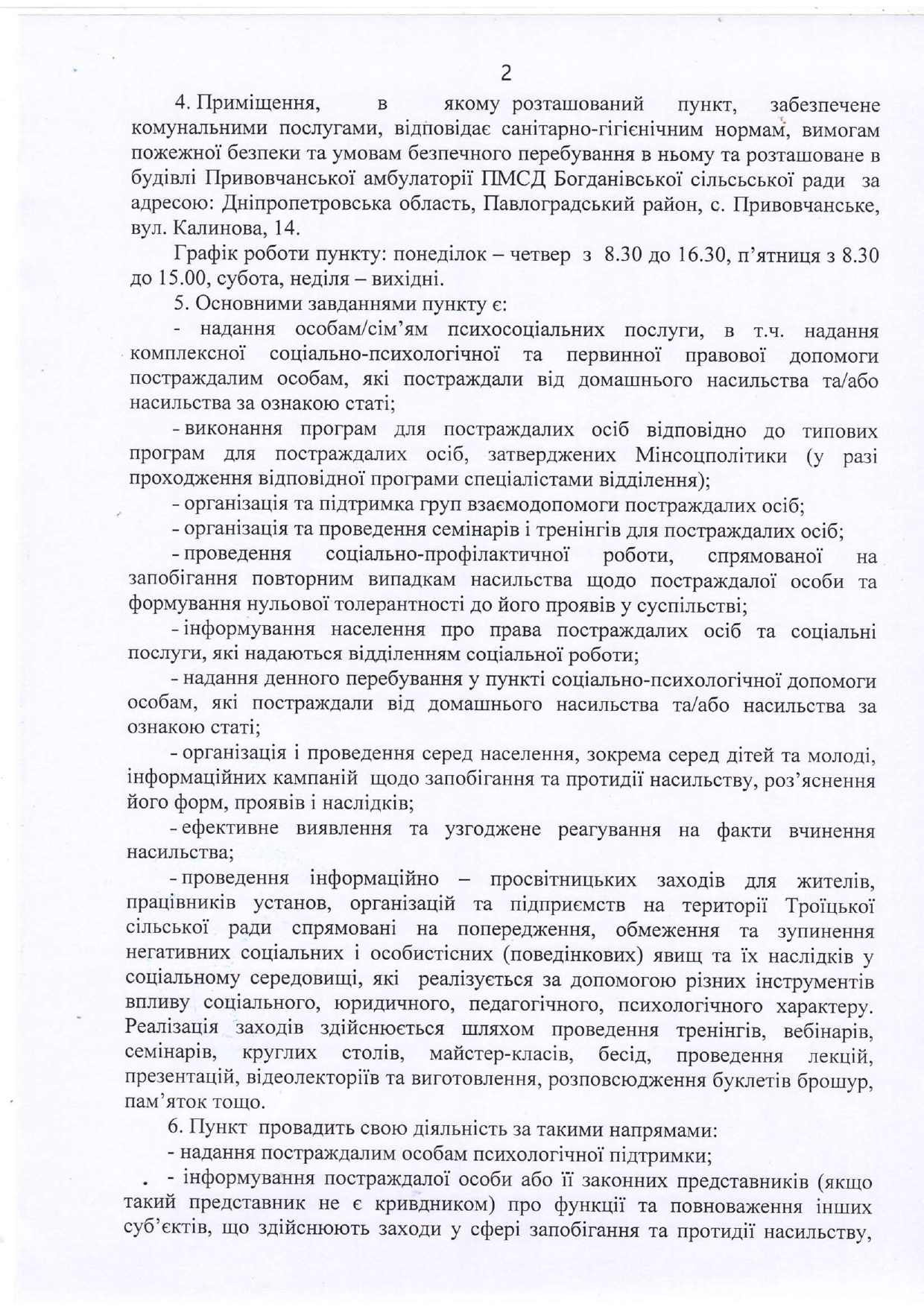 ПОЛОЖЕННЯ про пункт соціально-психологічної допомоги особам, які постраждали від домашнього насильства.